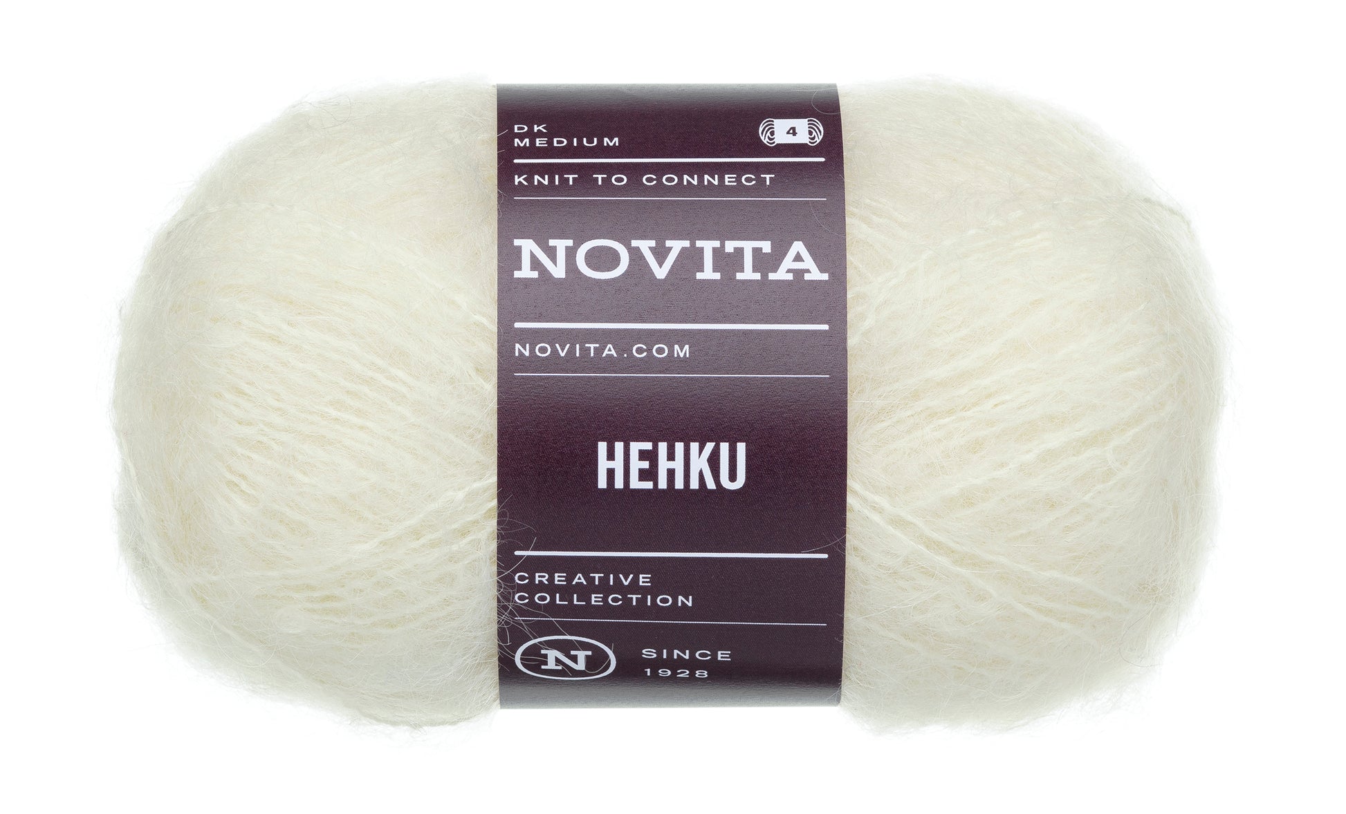 ノヴィタのHehkuは、空気をたっぷりと含んだやさしい肌触りのウールモヘア糸です。モヘア60%×ウール40%のリッチなブレンドの天然素材糸は、通気性と吸湿性に優れており、OEKO-TEX®認証を取得している安心・安全な糸です。暖かいのにむれにくく、暖房の効いたお部屋でも快適に過ごすことができます。50g玉でたっぷり編めるのも嬉しいです。